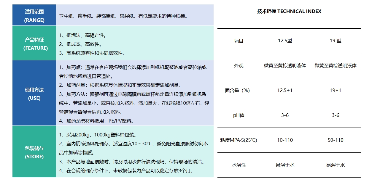 • HQ-SN866 低氟濕強劑,是一種陽離子聚多胺酰胺環氧氯,丙烷樹脂,本品不但具有較好的濕強效果,而且環境污染小,無毒害作用。與傳統MF樹脂和UIF樹脂相比,它不僅可以在中堿性條件下熱化,而且在提高紙張濕強度的同時,并不會損失細張的柔軟性、吸收性,特別是生活用紙。