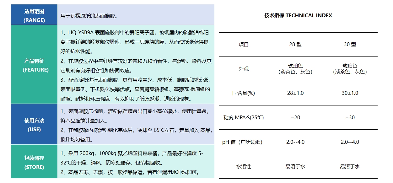 • HQ-G6887 表面施膠劑,是苯乙烯-丙烯酸醋類的共聚合成的一種弱陽離子表面施膠劑,能與淀粉有機溶合,賦予淀粉涂層良好的交聯強度和疏水性能。無熟化期,可100%留著于紙上,集中發揮其施膠效果,獲得穩定的抗水性能,且高強瓦楞紙不回潮,環壓強度穩定不變。